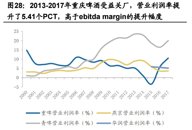 以重庆啤酒为例,自2013年嘉士伯入主以来,其开始大幅关闭低效工厂,不断下降的折旧推动着盈利能力持续改善。
