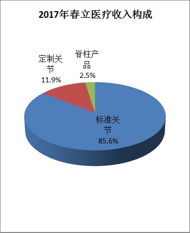 2017年春立医疗营收为3.0亿人民币,其中关节类收入占比97.5%,脊柱产品占比2.5%。