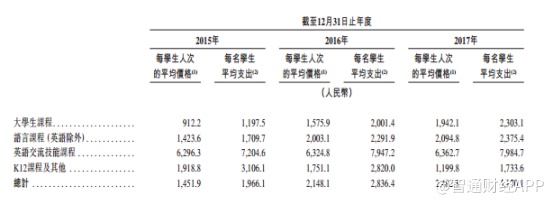 (新东方在线K12课程学生平均开支)