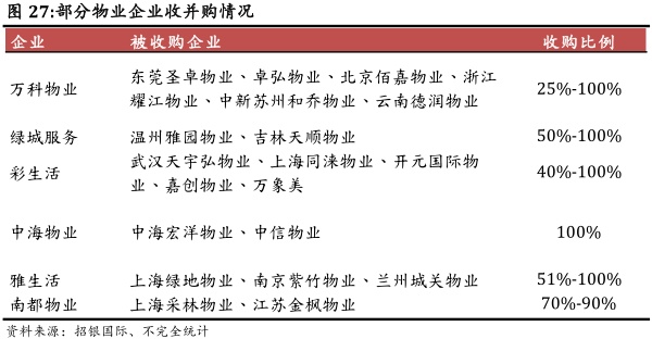 目前,规模型物业企业通过(1)地产母公司的支持,(2)第三方拓展,(3)收并购中小物业公司,实现管理面积的增加。