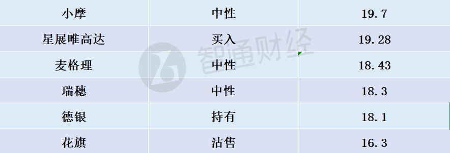 大行对恒隆地产(00101)最新投资评级及目标价(表)
