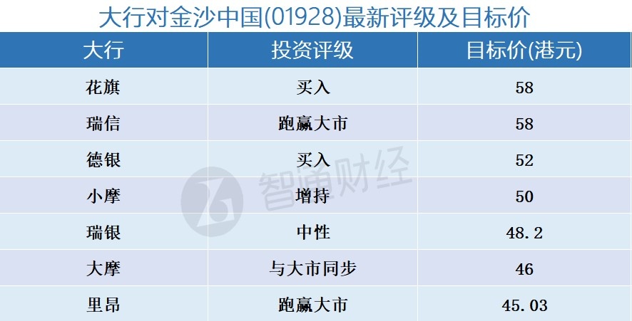 三、大行对金沙中国(01928)最新投资评级及目标价