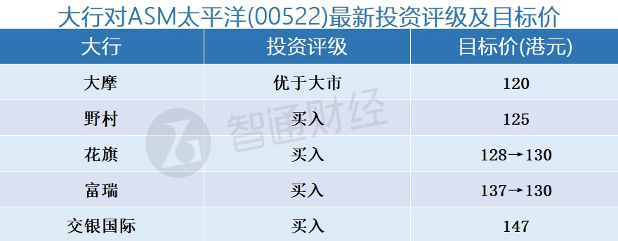 七、大行对ASM太平洋(00522)最新投资评级及目标价