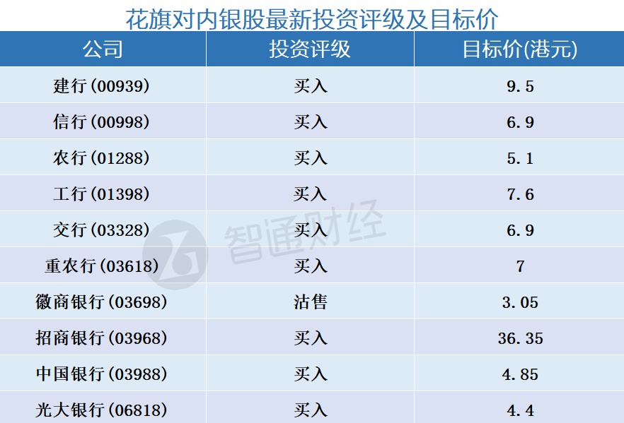 二、花旗对内银股最新投资评级及目标价
