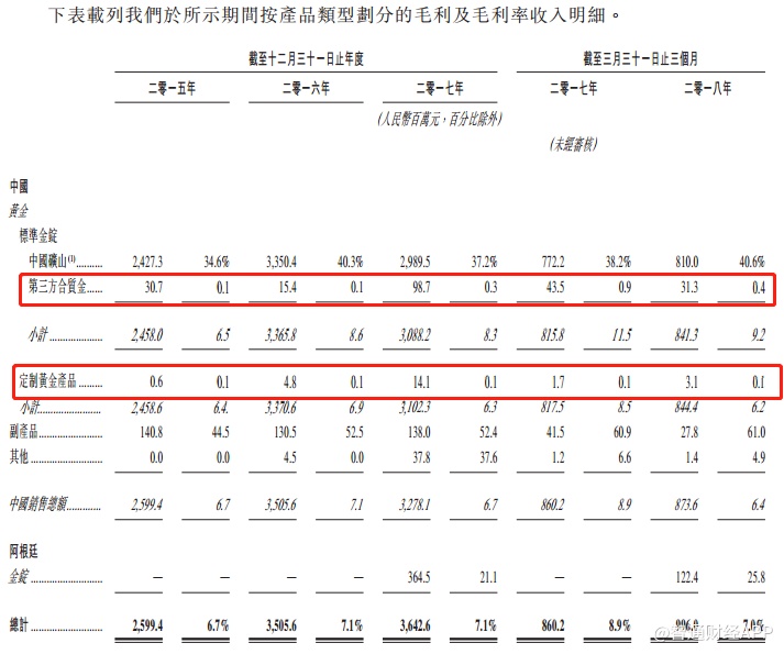 据智通财经APP了解,除了第三方合质金产品是由回收的黄金生产之外,定制黄金产品也是由采购自上海黄金交易所的标准金锭制成,而非以自有矿产出产的黄金作为原材料。