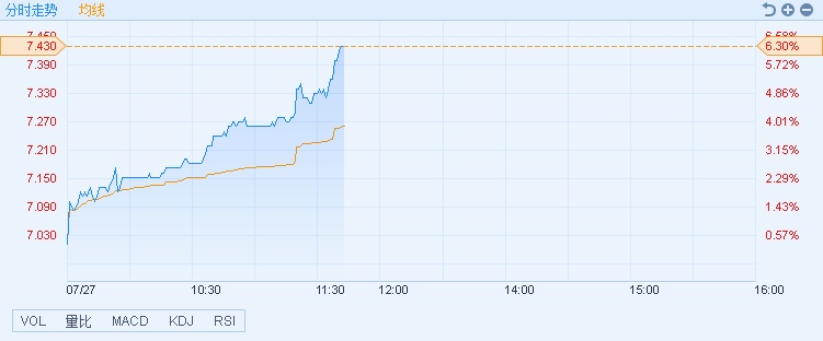 智通财经APP获悉,风电股走强,龙源电力(00916)股价上扬,截至11时42分,涨6.29%,报价7.43港元,成交额7546.44万。