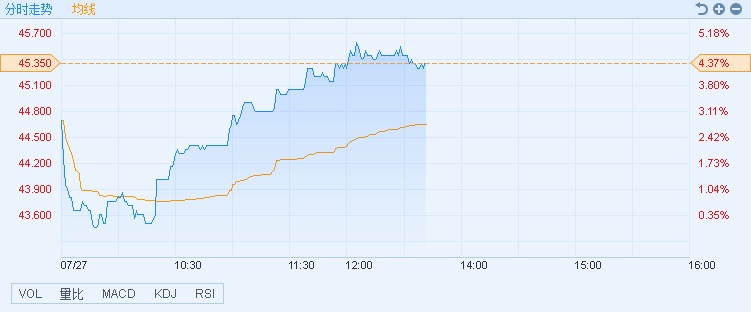 智通财经APP获悉,中车时代(03898)股价持续拉升,大摩重申其“增持”评级,目标价由49升至57.2元。截至13时41分,涨4.37%,报价45.35港元,成交额1.26亿。