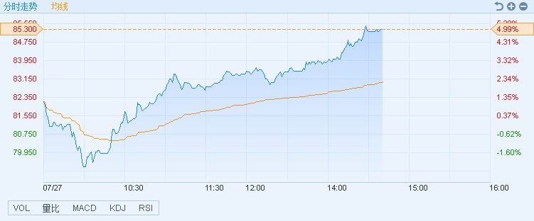 智通财经APP获悉,药明生物(02269)股价上扬,升势延续,7月23日公司发盈喜,上半年净利预增超2.5倍,截至14时40分,涨4.98%,报价85.3港元,成交额2.19亿。