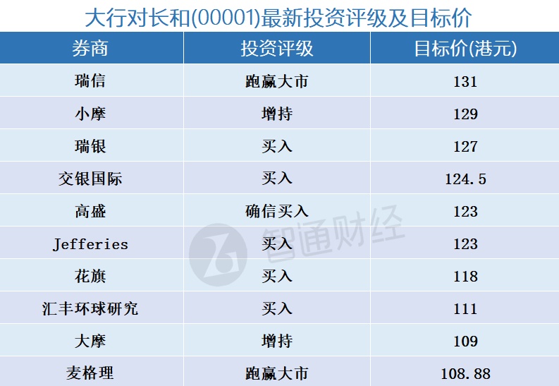 经智通财经APP整理,大行对长和(00001)最新投资评级及目标价如下,