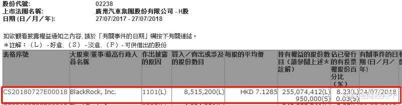 贝莱德增持广汽(02238)852万股 涉资6073万元