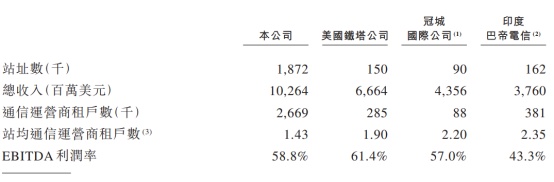 根据沙利文报告,截至2017年12月31日及在2017年,按站址数量、租户数量和收入计,中国铁塔在全球通信铁塔基础设施服务提供商中均列第一,以站址数量计,在中国通信铁塔基础设施市场中的市场份额为96.3%,而以收入计,占市场份额的97.3%。