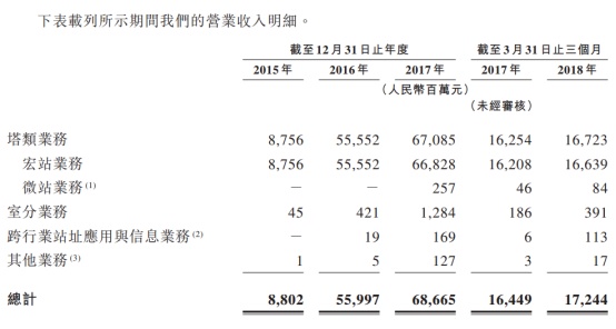 中国铁塔是全球规模最大的通信铁塔基础设施服务提供商。截至2018年3月31日,公司运营并管理1,886,454个站址并服务2,733,500个租户。