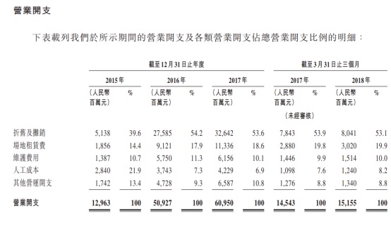 7、公司的营业开支主要包括折旧及摊销、场地租赁费、维护费用,于2017年分别占营业收入的47.5%、16.5%、9.0%。招股书披露:自2018年1月1日起公司铁塔及配套设施折旧由10年更改为20年,折旧费这一项可以省下120亿?如果这样算的话,2018年市盈率可能在20倍左右。但是2018年前三个月折旧费并没有变少啊。7分