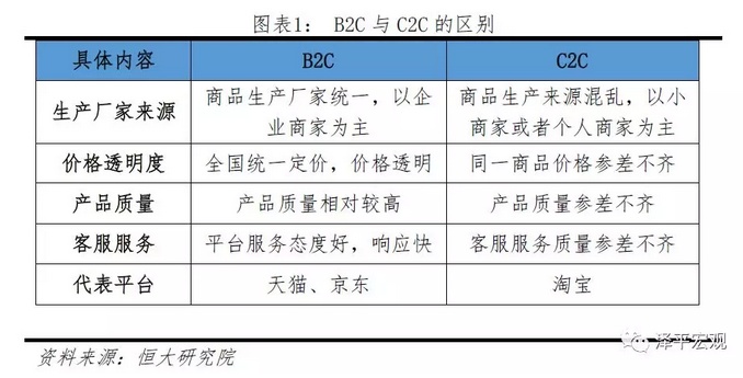 本文研究的网络购物市场主要包括B2C、C2C模式。B2C指的是企业商家通过电商平台将商品销售给消费者,如天猫、京东;C2C指的是小商家、个人商家通过电商平台将商品销售给消费者,如淘宝。