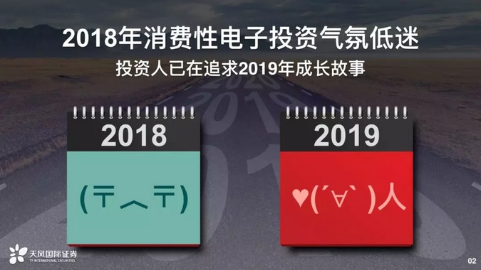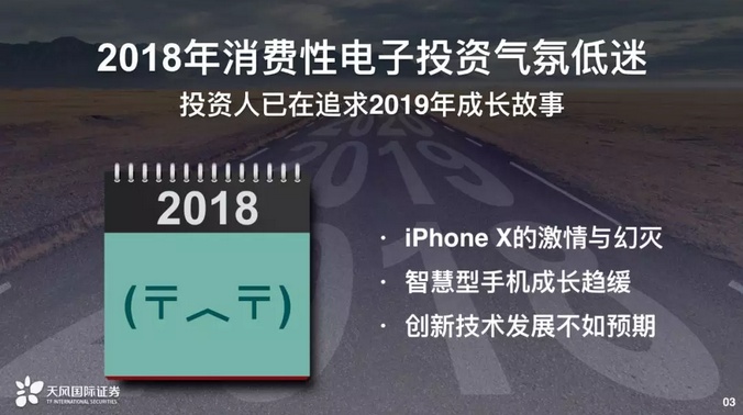 2019年消费性电子投资趋势可以讲的东西非常多,包括从产业的趋势、从个股的研究等等,其实可以讨论的东西是非常广泛的。光下半年苹果的计划,就可以跟投资人讨论超过一个小时。今天时间有限下,我希望把投资上的想法,从策略、最高层次的角度告诉大家消费性电子需要看什么,在时间有限下可能没有办法顾及到个股的部分,不过相信之后会有时间跟彼此之间交流。