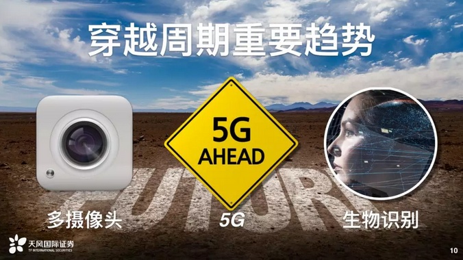 因此许多投资人希望可以看到长期一点的趋势,至少可以维持一年到两年,不只是一个周期。这方面我们为各位整理了5G、生物辨识和多摄像头的部分。