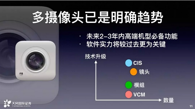 我们认为多摄像头对于整个光学产业,从CIS、VCM、镜头、模组都会有帮助,只是还是有一些细节的差别。