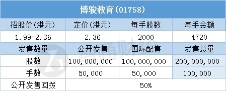 智通财经APP获悉,7月30日,博骏教育(01758)配售结束。本次配售招股价区间为1.99-2.36港元,最终定价2.36港元,每手4720港元。