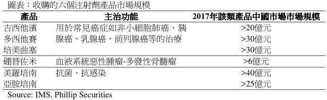 收购六个注射剂品种