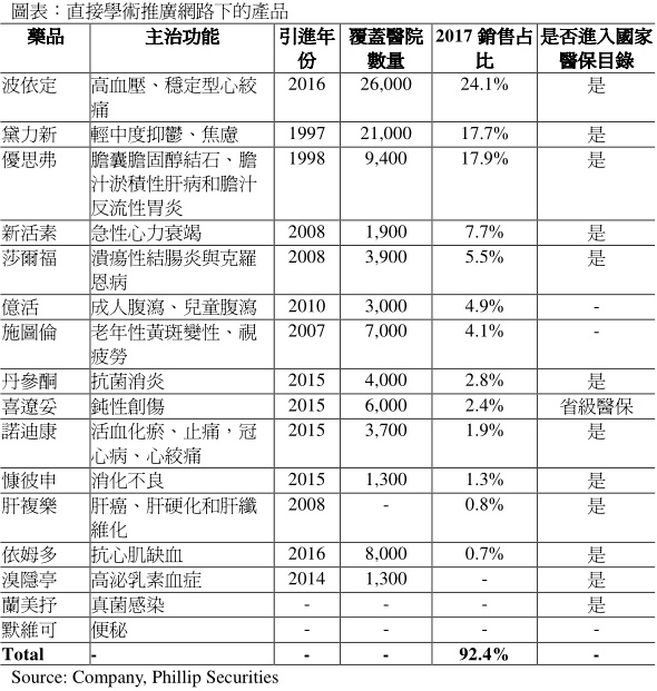 我们的估值模型显示目标价为21.0港元:未来的增长动能主要来自现有医院网路的渗透率进一步提高,以及引入新产品。即使不考虑研发管线的和新引进的产品,仅以现有产品为收入来源,假设费用率保持相对稳定,我们预测2018/2019年的每股盈利为0.77/0.86元,目标价21.0港元,“买入”评级。(汇率假设:0.8706RMB/HKD)