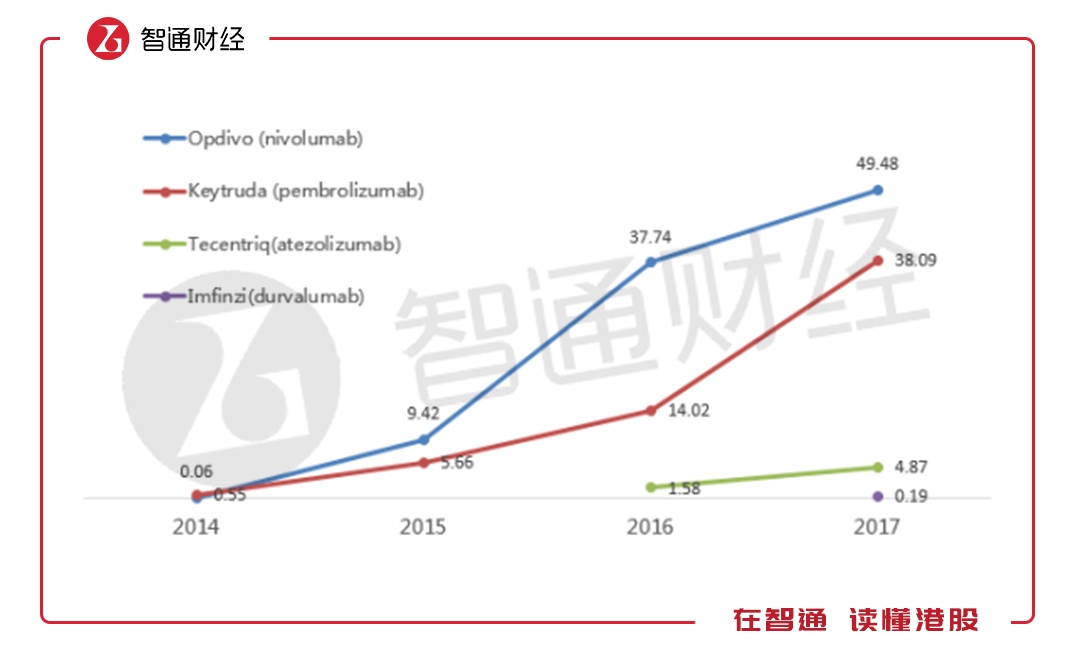 智通财经APP看到,除O药、K药,目前全球上市的3个PD-1/PD-L1抑制剂,而且无不例外均属于大分子抗体类药物。从销售收入上看,PD-1/PD-L1药物的全球市场规模只用了3年时间就扩张到了超过100亿美元,增长极其迅猛。以PD-1为代表的肿瘤免疫疗法目前已经成为肿瘤临床治疗的核心治疗方案。预计2020年整个PD-1/PD-L1类药物市场需求将超过数百亿美元。