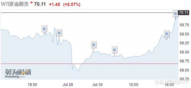 智通财经APP获悉,WTI原油重新站上70美元/桶关口,刷新7月16日来新高,日内涨超2%。截至发稿,WTI原油报价70.11美元,涨1.42或2.07%。