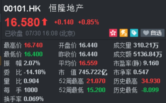 有意思的是,恒隆地产股价在公布中期业绩后并没有下跌,反而延续近期的上涨走势,是何原因?
