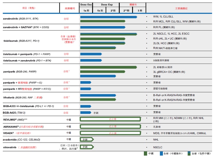 百济神州研发产品组合全面,由六种内部开发、临床阶段的在研药物组成,包括三款后期临床在研的核心药物:
