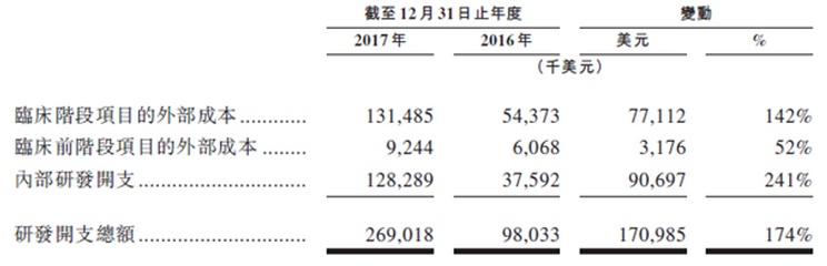 作为行业成功的关键,公司在研发投入方面巨大,2017年投入2.69亿美元为肿瘤领域中投资最大,也是中国生物制药公司中投资最多之一。