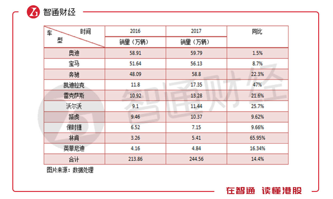 实际上,在汽车贸易上,中国进口的车型,美国的很少,主要德国、日本和韩国的车型,车型主要有宝马、奔驰、奥迪、本田、丰田及现代。宝马、奔驰以及奥迪销量在国内一直保持前三强,2017年合计销量174.72万辆,占据国内豪华车市场超过七成的份额,也是国内各大汽车经销商主要销售的车型。