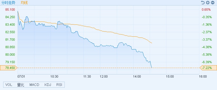 智通财经APP获悉,药明生物(02269)领跌生物科技板块,截至14时33分,跌7.21%,报价78.45港元,成交额1.6亿。