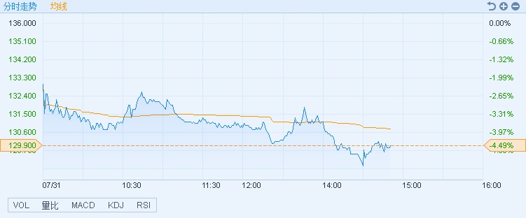 智通财经APP获悉,受美股科技股大跌影响,H股科技股板块普遍下挫,舜宇光学(02382)遭小摩减持111.63万股,截至14时49分,跌4.56%,报价129.8港元,成交额9.95亿。
