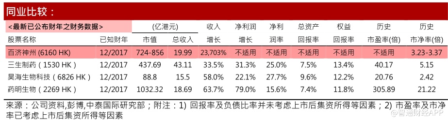 公司投入大量资金在抗肿瘤创新药的研发上,2017年研发费用为2.7亿美元,同比增长174%,占当年支出的81%。中泰国际认为,居行业前列的研发投入水平将有力地支撑公司未来的发展。