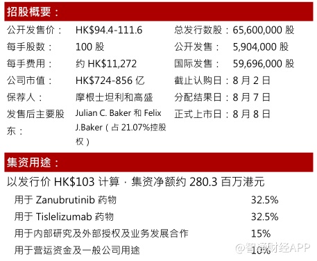 公司2016年在美国纳斯达克上市后,股价从每股24美元涨至最高220美元,虽未盈利,已受投资者追捧;此次港股上市,由摩根士坦利和高盛担任保荐人,瑞信、中信里昂、中金、德意志银行、UBS和华兴资本联席经办,承销实力强;基石投资者方面,引入Baker
