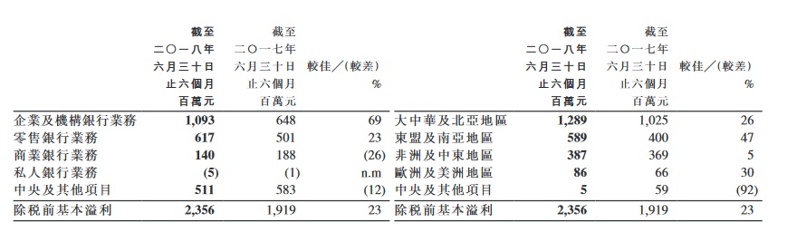 商业银行方面,渣打上半年增加7%,当中大中华及北亚地区以及东盟及南亚地区的业务分别增长12%及9%,共同抵销非洲及中东地区的收入减少4%