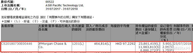 根据联交所资料显示,摩根大通于上周四(26日)减持ASM(00522)46万股,每股作价97.2292元,总值4519万元,最新持股量降至5.9%。