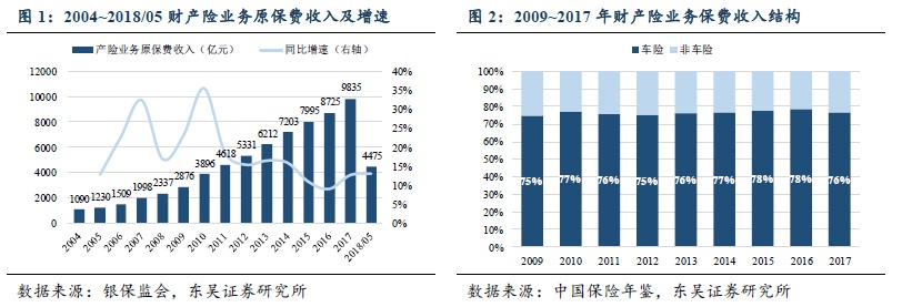 今年1-5月,财险保费同比增长13.1%,延续了2017年以来增长回暖的趋势,非车险作为核心驱动力,其比重不断提升推动收入结构优化。