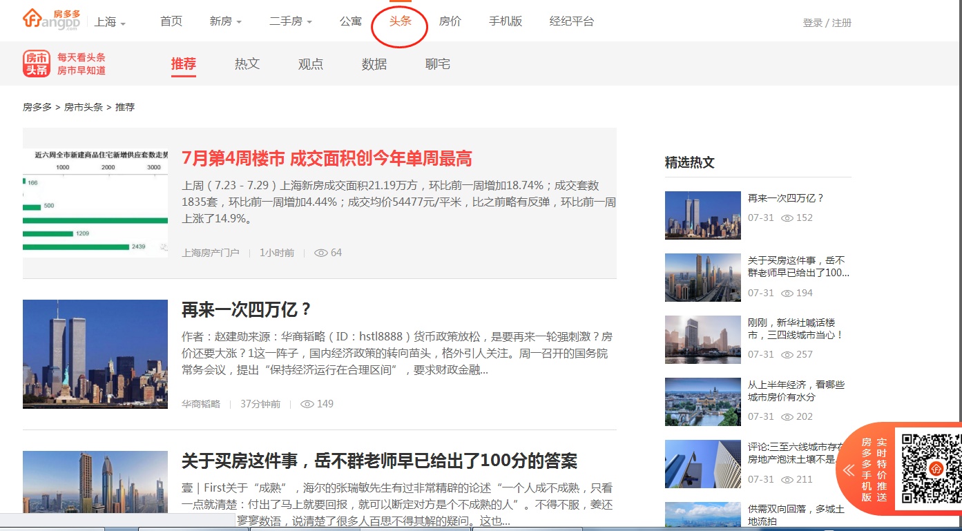 积累C端客户最重要的是流量,房天下背靠媒体出身的搜房网,借助搜房网的流量,迅速积累了用户。而无媒体靠山的房多多只能通过生态内容的搭建吸引C端客户,软件内的“头条”板块便是为社区生态的打造而插入。