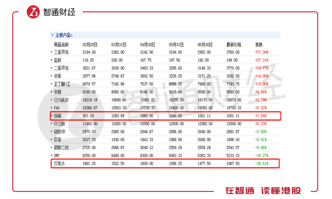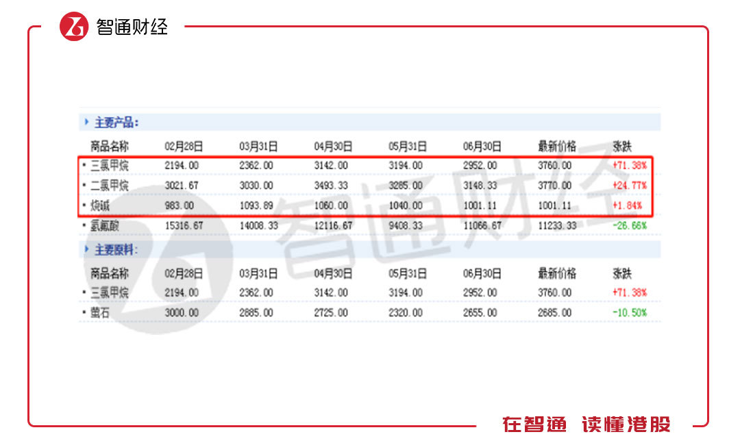 具备同行性质的东岳集团及鲁西化工的商品价格信息可以在生意社官网找到,烧碱及甲烷氯化物价格涨幅基本一致。以下为上述两家公司的商品价格具体信息: