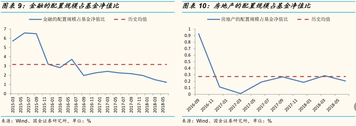 金融地产:金融的配置比例继续下跌,已经处于历史最低点;地产的配置比例同样下跌,基本处于历史均值附近。