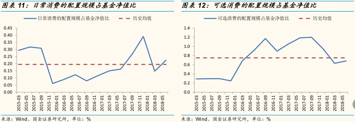 消费:日常消费、可选消费的配置比例均有所上升,基本处于历史均值附近;医疗保健高于历史均值,有一定的超配。