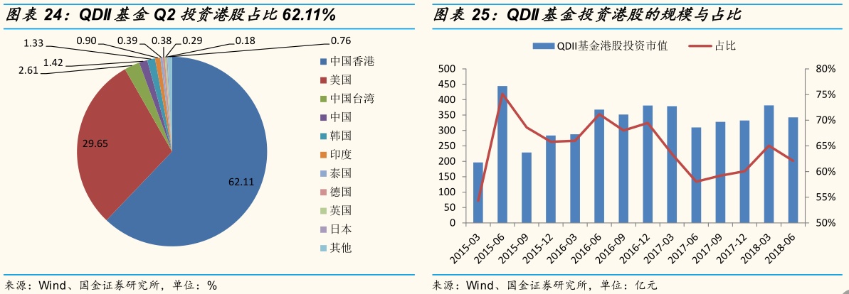 截至2018年7月26日,QDII基金在港股中的为投资规模为342.48亿元,为占比为62.11%,相比较于1季度的65.05%,占比有所下降。