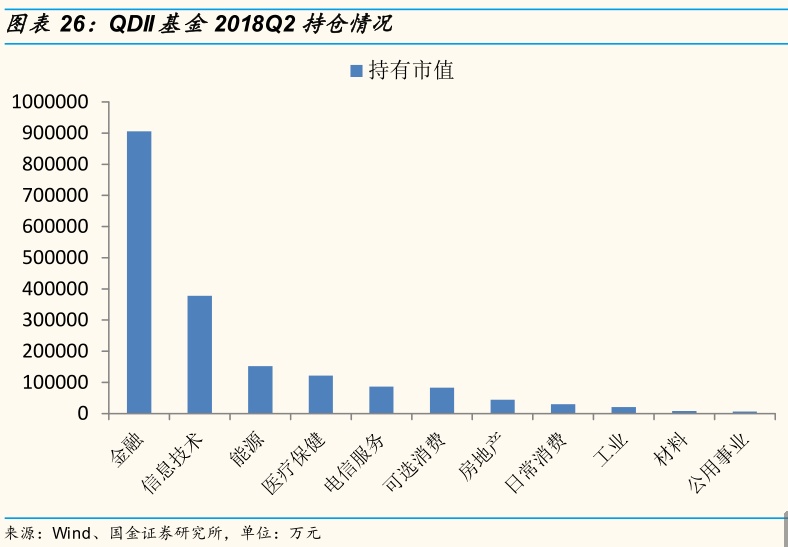 陆港通基金与QDII中,金融、信息技术、医疗保健均分别为第1、2、4大重仓行业。