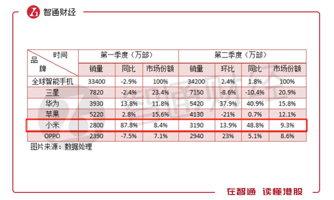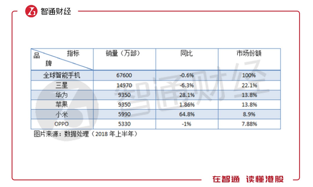 2018年第一季度,小米(01810)的智能手机硬件以87.8%的销量增长刷亮了投资者的朋友圈,成为智能手机品牌的耀眼明星,而近日IDC发布了全球智能手机2018年第二季度销量及市场份额的报告,小米又再次刷亮了朋友圈。