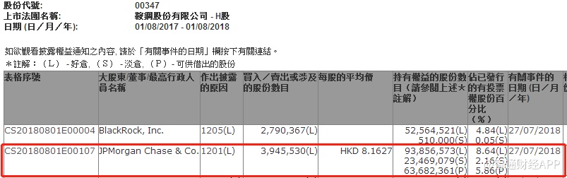 智通财经APP获悉,根据联交所资料显示,摩根大通于上周五(27日)减持鞍钢股份(00347)395万股,每股作价8.1627元,总值3224万元,最新持股量降至8.64%。