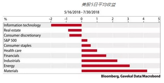 然而,Facebook和Twitter两家公司,却能够拖累整个科技版块下跌。在二季度财报发布后的5个交易日中,科技股平均下跌了2%。这恰好说明,投资者之前对科技行业的期望太高了。于是,一点毛毛雾就变成了投资者心中的倾盆大雨。