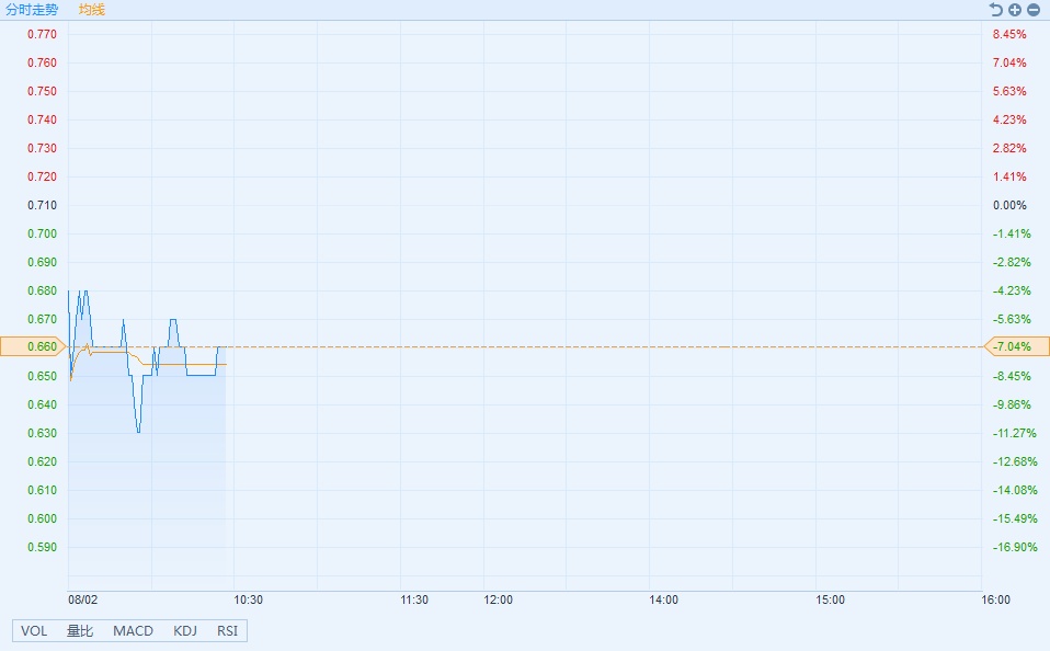智通财经APP获悉,千百度(01028)于2018年8月2日低开低走,截至10:25,报价0.66港元,跌幅达7.04%,成交额达820万港元。