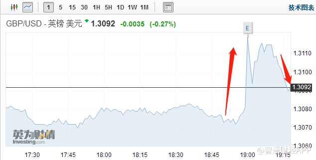 决议过后,英镑兑美元快速拉涨,最高触及1.3144,截至发稿,现报1.3092,跌35点或0.27%。