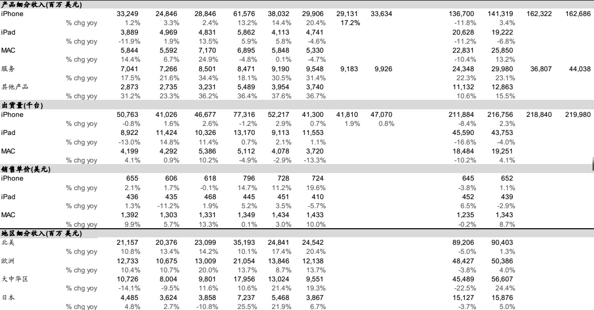 iPhone收入高于预期,主要为单价下降幅度低预期。出货量基本符合预期。