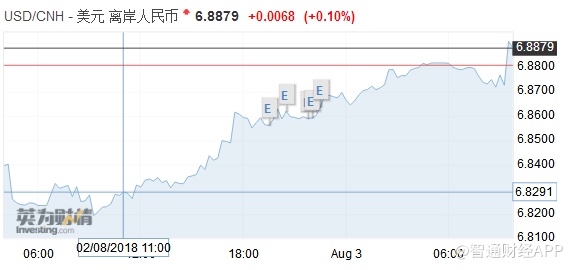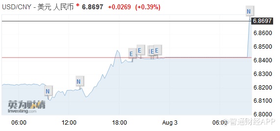 智通财经APP获悉,8月3日,离岸人民币兑美元跌破6.89关口,最低跌至6.8918,刷新2017年5月以来新低。在岸人民币跌破6.87关口。
